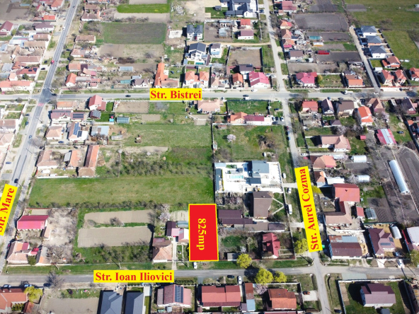 Terenul este situat in centrul localitatii Mosnita Noua, vis-a-vis de parcul central, cu accest direct la Drumul Judetean 592 (4 benzi), in imediata vecinatate a Primariei Mosnita si a centrului comercial MCity.